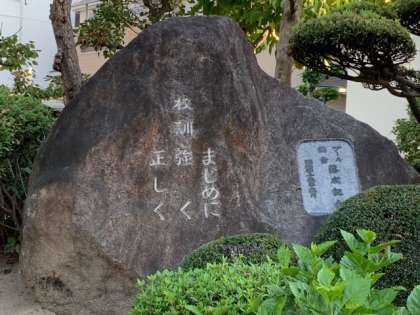 記念式典の日が近づいてきました。今日は、児童朝会で校長より校訓の「まじめに 強く 正しく」について話をしました。