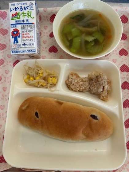 「ハムと野菜の中華スープ」は、ハム、たまねぎ、にんじん、しいたけ、チンゲンサイを使用し、塩、こしょう、うすくちしょうゆ、中華スープの素で味つけしたスープです。