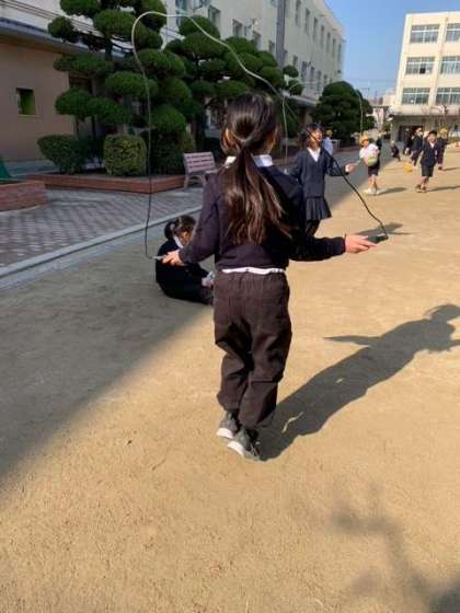 中には、毎日のように友だちと縄跳びを楽しんでいる子たちもいます。投稿者も誘われ、一緒に縄跳びをしましたが、こんなに跳べなくなったものかと、年齢を感じてしまいます。それに反して、子どもたちのスタミナには、驚かされます。休む間も無く、笑顔で色々な跳び方をして楽しんでいました。