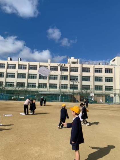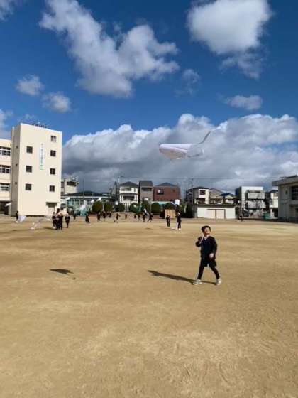 しました。少し強目の風が、子どもたちの凧をぐんぐん、どんどん上げてくれていました。