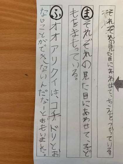 1年生、国語の様子です。叙述から、「オオアリクイ」と「コチドリ」の違いについて考えました。