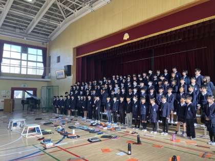 2月15日の学習発表会に向けて、各学年練習に励んでいます。舞台での並び方・声の大きさの調整、小道具の準備など着々と進めています。写真は5年生の練習の様子です。当日は、子どもたちの頑張りをぜひ見てくださいね!