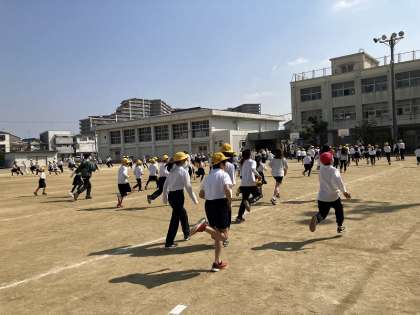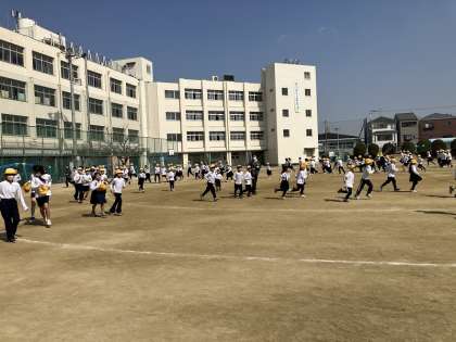 休み時間、かけ足タイムの様子です。今週は1・3・5年生が走ります。本日は気候が暖かく、気持ちよさそうに走っている児童が多かったです。