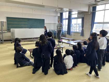 2年生の外国語授業の様子です。英語で道案内をし、無事に目的の宝物を見つけられるかというゲームをしています。クラスみんなで協力して、見事に宝物を見つけることができました。ゲームをクリアした児童の嬉しそうな気持ちが伝わってきました。