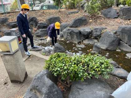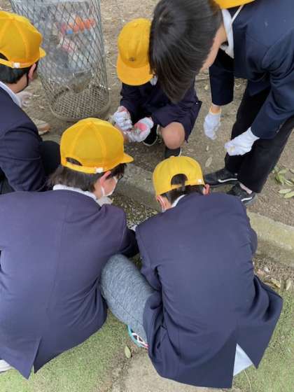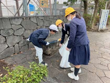 ?6年生は、家庭科「共に生きる地域での生活」の単元で、地域でできることを話し合い、清掃活動に取り組みました。クラス毎で、清掃する箇所を分担し、普段からよく利用している「大隅公園」「せせらぎ」「大桐公園」「今在家公園」を清掃しました。