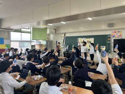 6年生のミニ運動会と茶話会の様子です。ミニ運動会はドッジボール大会とリレーが行われ、盛り上がっていました。6時間目はお待ちかねの茶話会です。お菓子とジュースが振舞われ、各クラスから大きな「かんぱーい!」の声が聞こえました。
