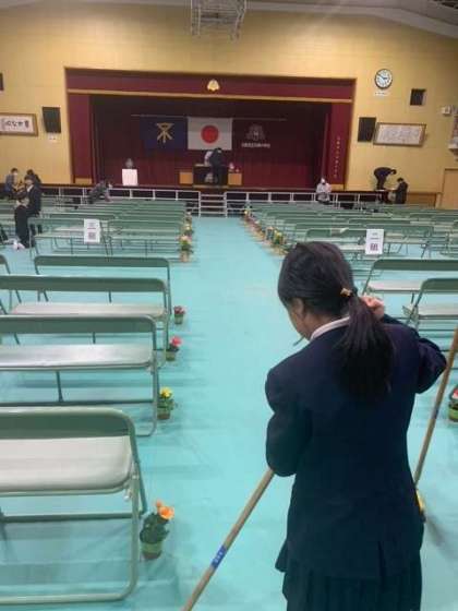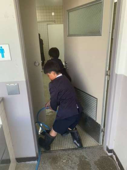 教職員と一緒に、5年生児童が、清掃などを大変よく頑張ってくれていました。