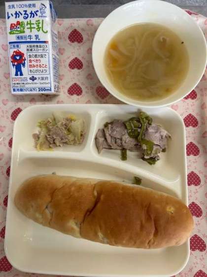 「スープ」は、鶏肉で旨みを出し、じゃがいも、玉ねぎ、にんじん、彩りにパセリを使用しています。