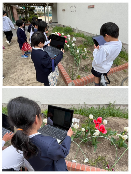 見つけた春をタブレットで撮影していました。たくさん見つけることができたかな?