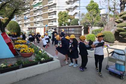 2年生の生活科の様子です。「春みつけ」をしています。春の草花の様子や生き物を観察し、パソコンのカメラ機能で撮影します。お互いにどんな写真を撮ったのか見せ合いをして和気藹々とした様子でした。