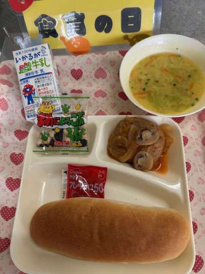 「煮こみハンバーグ」は、たまねぎ、マッシュルーム、ケチャップ、ウスターソースで作ったソースでハンバーグをじっくりと煮込みます。