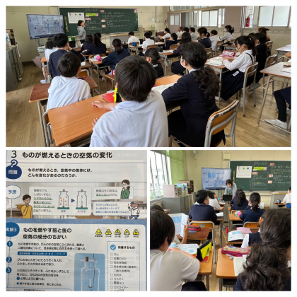 ちっ素、酸素、二酸化炭素のうち、ものを燃やす働きがあるのはどの気体なのかを学習しました。