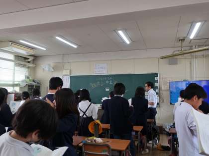 6年生の国語の授業風景です。「さなぎたちの教室」の朗読会が行われています。班内で交代で読み合い、お互いの読み方を評価し合います。みんな感情をこめて読むことができていました。