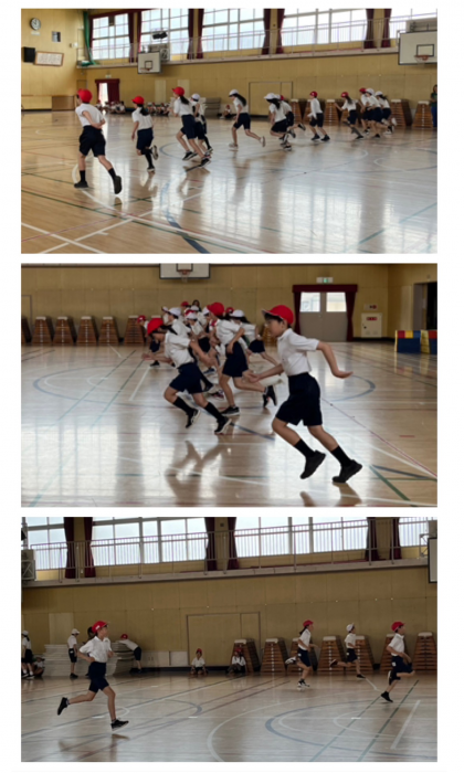 5年生は、20mシャトルランをしました。CDの音に合わせて走るのですが、記録を伸ばすためにいくつかのコツがあります。