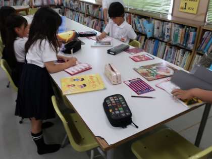 大桐小学校では大桐タイムに図書委員会運営の元、図書館開放を行っています。先週配布された読書手帳を持って利用する児童が急増しています。10冊読むごとに1枚、手作り栞のプレゼントがあるので、それを目指して本を読む児童もいます。
