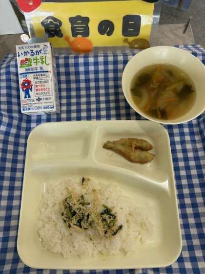 「とりなっ葉いため」はささみ(油漬け)とだいこん葉をいため、料理酒、うすくちしょうゆ、こいくちしょうゆで味つけした、ご飯によく合う一品です。