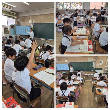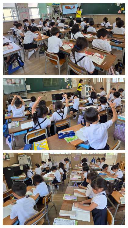 先生が「ノートを開いて、下敷きを準備しましょう。」と言うと、子どもたちはてきぱきと行動していました。そして、ていねいに字を書いていました。