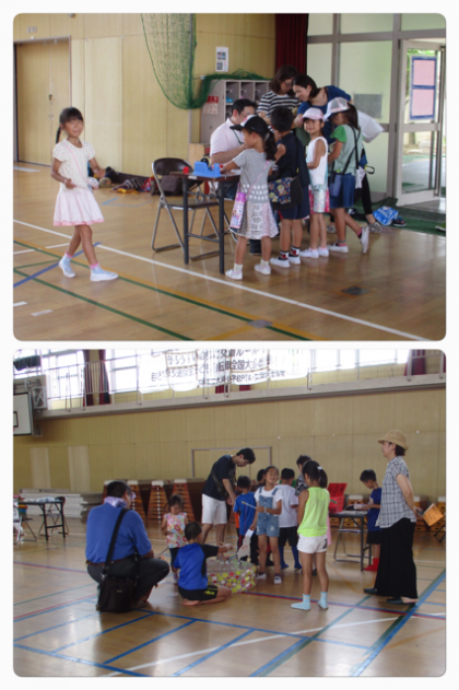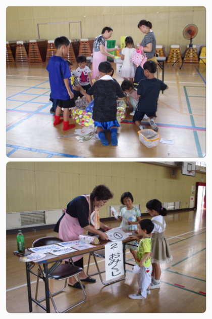 講堂で野菜の花あてゲームや食に関するクイズなどを行いました。