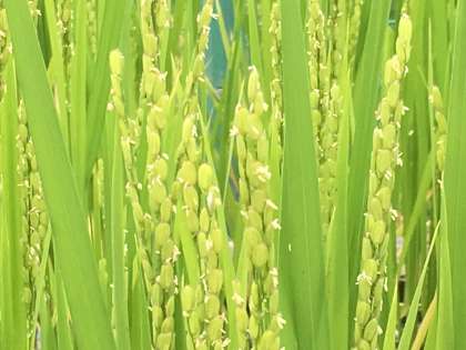 大桐田(だいどうでん)の稲に、穂がつきました。これを出穂(しゅっすい)といいます。これから、1か月かけて、穂の中に栄養がためられお米ができてきます。