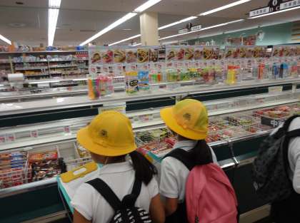 バックヤードの見学の後、売り場の様子を見学し、品物の並べ方や買ってもらうための工夫について学習しました。