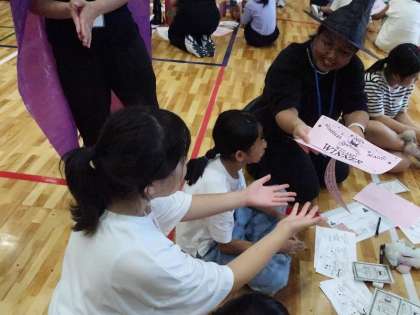 先日、5・6年生を対象に行われたイングリッシュ・デイの様子です。C-NETの先生や他の小学校の児童とワークシートやゲームを通して英語に触れあうイベントです。どのチームも活発な様子でした。