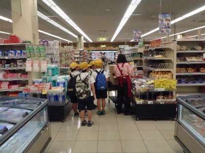 3年生の社会見学の様子です。関西スーパーに見学に行きました。売り場のコーナーだけでなくバックヤードや加工場の様子も見学させていただきました。聞いたお話をしっかりワークシートにまとめました。