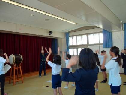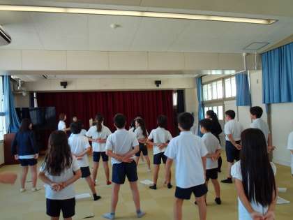 応援団の練習風景です。応援合戦のレクチャーと、声出しの練習をしました。最初はなかなか声が出ていなかった子も何度か練習すると大きな声を出せるようになりました。