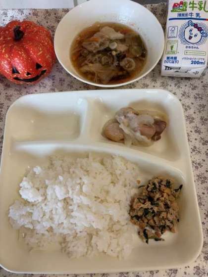 「ツナ大豆そぼろ」は、ツナ、大豆(ひきわり)、青みにだいこん葉を入れていため、料理酒、砂糖、うすくちしょうゆ、こいくちしょうゆで味つけした、ご飯によく合う一品です。