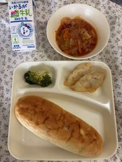 「ミネストローネ」は、鶏肉、キャベツ、たまねぎ、トマト(缶)、にんじん、彩りにパセリを使用し、にんにくとオリーブ油で香りよく仕上げた具だくさんのスープです。