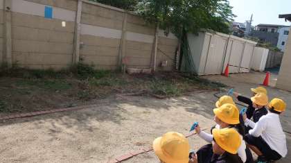 3年生の理科授業の様子です。鏡の使って光を反射する学習をしています。「ひかりのまとあてゲーム」をして、光をうまく反射させることができました。