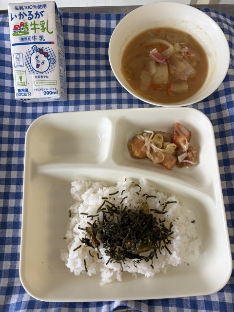 「じゃがいもとベーコンのみそ汁」は、にぼしで出汁をとり、ベーコン、じゃがいも、玉ねぎ、白菜、にんじんを使用した彩りのよいみそ汁です。