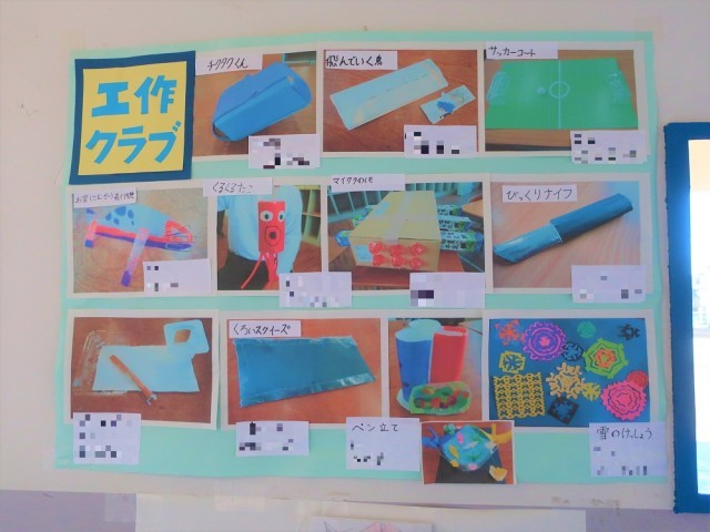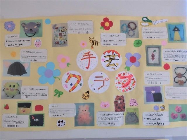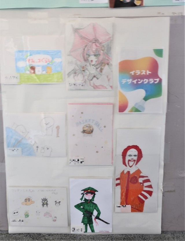 今週からクラブ活動で制作した作品の展示が始まっています。手芸クラブ・工作クラブは作品の写真を、イラストデザインクラブは作品そのものを、科学クラブは実験の様子をまとめたものを展示しています。