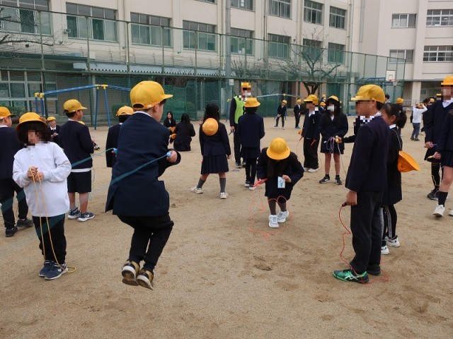 本日の児童集会の様子です。「なわとびゲーム」をたてわり班で行いました。集会委員の児童が出すお題にそって、なわとびを飛びました。和気藹々とした雰囲気で活動できました。