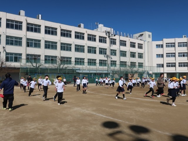 2・4・6年生のかけ足タイムの様子です。寒い中ですが、元気に走っています。