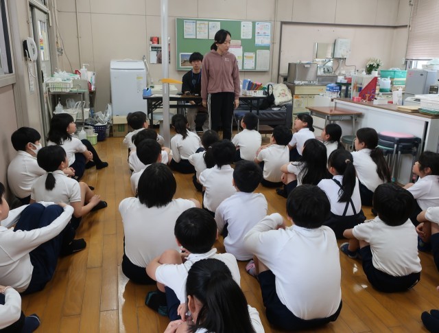 測定前には養護教諭から、発育測定や視力検査、歯科検診などを実施する理由についてお話がありました。