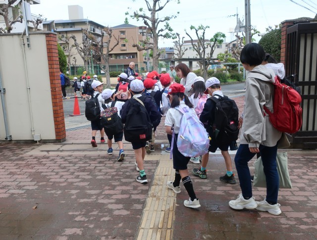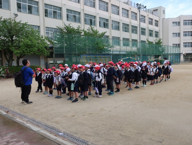 2年生は、春の遠足で大阪城公園に行きます。元気に出発しました。