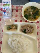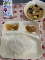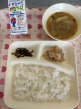 今日の献立 ・まぐろの甘辛焼き ・豚汁 ・くきわかめのつくだ煮 ・ご飯 ・牛乳 ...