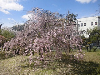 枝垂れ桜が花を咲かせています。 とてもきれいでした。