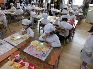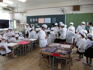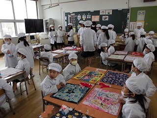 6年生が運んでくれた食器やおかずを自分たちで配膳しました。