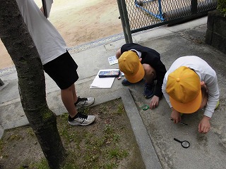 虫メガネを持って、アリやダンゴムシの様子を観察しました。