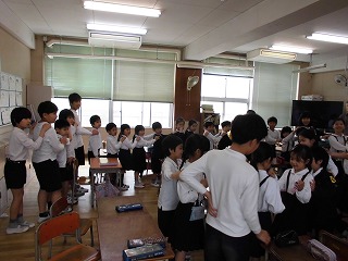 司会をがんばっていました。自己紹介の後、並び方や、簡単なゲームをして交流しました。