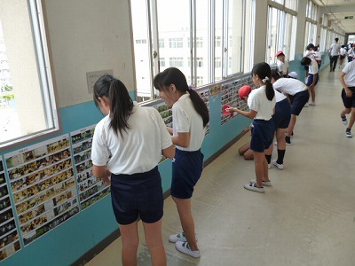 林間学習の写真が5年生教室前の廊下に展示されました。
