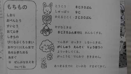 明日の遠足は8時30分までに登校できるようにお願い致します。