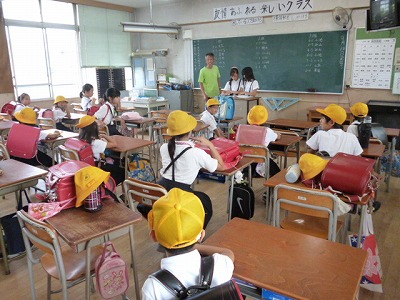 そして、各地区ごとの集合場所(教室)へ連れて行ってもらいます。