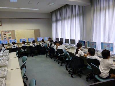 2年2組がパソコン教室で「2学期の時間割表」を作成していました。