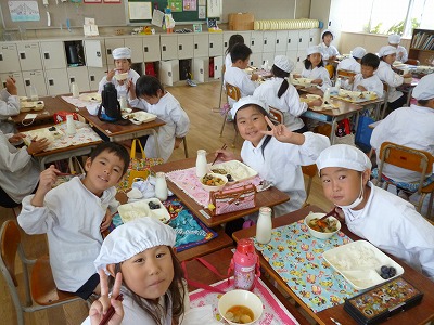 肉じゃがはとっても人気で、どのクラスも大おかずの食缶はすぐに空っぽになっていました。