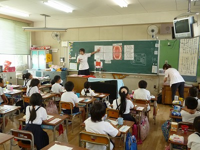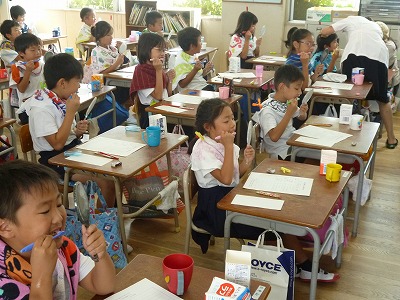 2年生がクラス毎に歯科衛生士さんに来ていただいて「歯みがき指導」を実施しました。