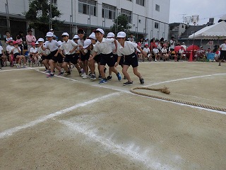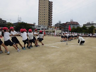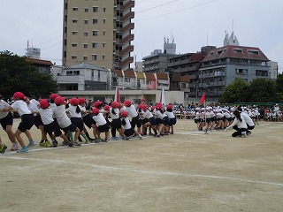 全員で力を合わせてちなを引いた後、2回戦では、かけっこの要素も取り入れて取り組みました。