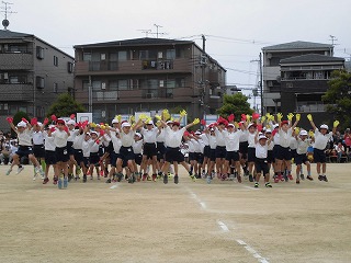 カラー軍手をはめて、みんなで力を合わせて表現していました。