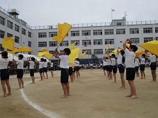 5年生による、「豊新フラッグ!〜心ひとつに〜」の様子です。